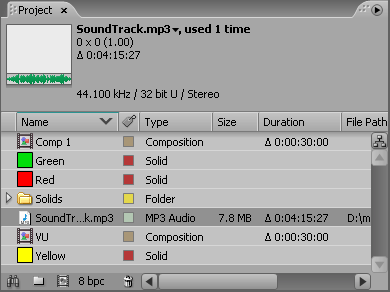When you import a file into an After Effects project, the file itself is not added to the project — only a reference to the file. This allows you to maintain a small project file size with links to original media clips in various folders on your hard drive or network. Obviously you need to be careful when moving files around as links can easily be broken. For this reason you may find it easier to keep all your project and media files in the same folder where possible.