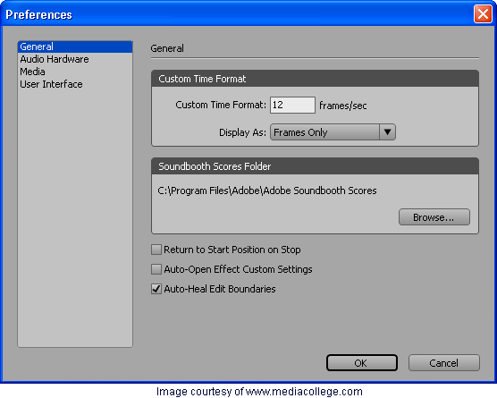 - Soundbooth Scores Folder: The location of your Soundbooth score templates. This folder opens when you click the Browse button in the AutoCompose Score panel.