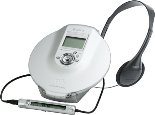 | In the box: | CD player, MDR-027 stereo headphones, LCD Remote Commander remote control, rechargeable battery (NH-14WM), backlit battery-charging stand, external battery case (AA x 1, battery not included), a CD-ROM (Sonic Stage software), a carry case, an AC power adapter, a user's manual, and warranty information |